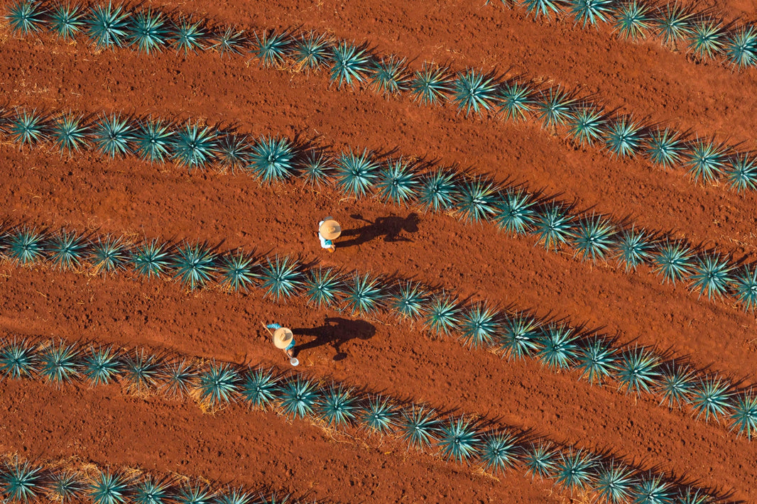 When selecting materials for the bar, we aimed for it to stand out without overshadowing the rest of the kitchen. We chose the same blue for the cupboards and brass hardware to maintain cohesiveness. To give the bar a unique touch, we used a checkered blue backsplash for a bit of texture and wooden shelving was used to continue the incorporation of natural materials. Displayed on the shelves are the images I took while flying over the Tequila Don Julio agave fields in Jalisco, Mexico. The bar is the perfect spot to kick-off cocktail hour and as a special treat, those staying at the house receive a bottle of Tequila Don Julio when they arrive.