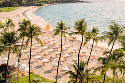 Enjoy a walk along the warm white sand in AFTERNOON STROLL, MAUNA KEA from the series Gray Malin at the Mauna Kea.