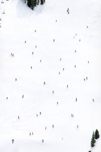 Speckles of brightly hued skiers decorate the freshly fallen snow in ASPEN MOUNTAIN RUN. Gray's popular À la Montagne series, shot from doorless helicopters, showcases the luxe winter bliss found at lavish ski resorts around the world from a unique aerial perspective.