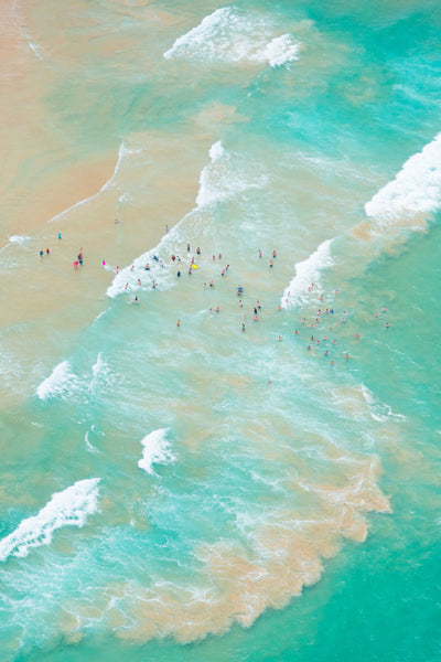 Spot brightly dressed beachgoers amongst the turquoise waters in the incredible AUSTRALIA OCEAN TRIPTYCH from the iconic A la Plage series. Gray ventured all over the globe to capture these iconic scenes shot from a doorless helicopter. Gray discovered that the love of water is a universal experience, an activity that offers people a sense of freedom and joy.