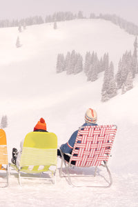 Sit back and take in the snow-filled pine mountain top views in BACK BOWLS SUN LOUNGERS TRIPTYCH, VAIL from the Gray Malin in Vail series.