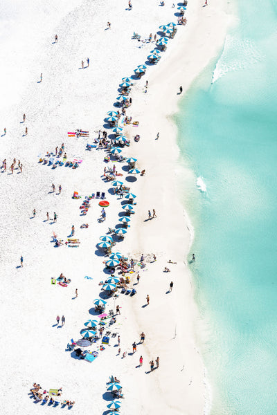 Embrace the beauty of the Florida coast with Beach Day Vertical, 30A Florida, a fine art photography print from Gray Malin’s À la Plage series. This vertical aerial shot features a line of crisp teal and white umbrellas set against the shimmering waters of the Gulf of Mexico, offering a picture-perfect view of beachside paradise. Ideal for creating a serene coastal atmosphere in your home, this print captures the tranquil essence of Florida’s 30A beaches.