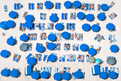 Sunbathe in a sea of blue umbrellas in BLUE UMBRELLAS, MIAMI, FLORIDA from Gray’s beloved À la Plage series.
