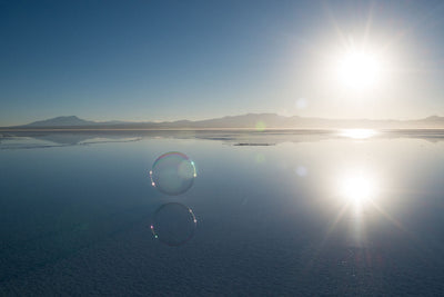 Experience a burst of bliss with BUBBLES 3 of the remarkable Far Far Away series. Shot on location at the world's largest salt flat, this area has extremely high color temperature resulting in unbelievable hues much more vivid than the eye usually sees. With this raw, unedited series, Gray wishes to capture the whimsical happiness of a place unknown.