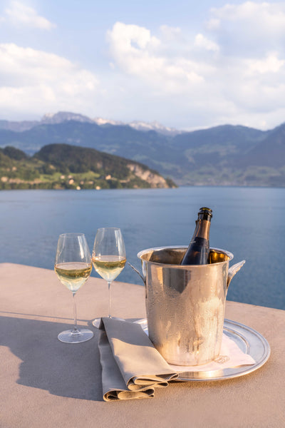 Enjoy a sip while taking in the Italian Alps in CHAMPAGNE FOR TWO, LAKE COMO from Gray’s iconic series, La Dolce Vita.