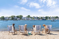 This canine beach club has front row seats to the harbor in Beach Day Pups, from the series Gray Malin on Martha’s Vineyard.