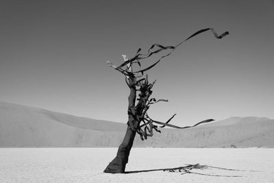 Let your imagination flow with the hauntingly beautiful streamers taking motion in the breeze in DANCING DESIRE from the stunning Namibia series. Gray shot on location at Dead Vlei, a clay pan at the base of the tallest sand dunes in the world. He found inspiration in seemingly everlasting sun-scorched tree skeletons, inviting us to see this wonder of the world in a whimsical new way.