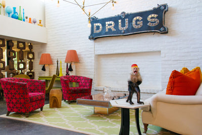 An expressive exotic monkey plays bellman in Gray's capricious capture of DRUGS from the well-known Gray Malin at the Parker series in this fine art photography print. Gray's vision of a modern day oasis with animated animals at work about the luxury hotel was shot on location in the delightful desert treasure of Parker Palm Springs. He invites you to live with the essence of the perfect getaway in your everyday life.