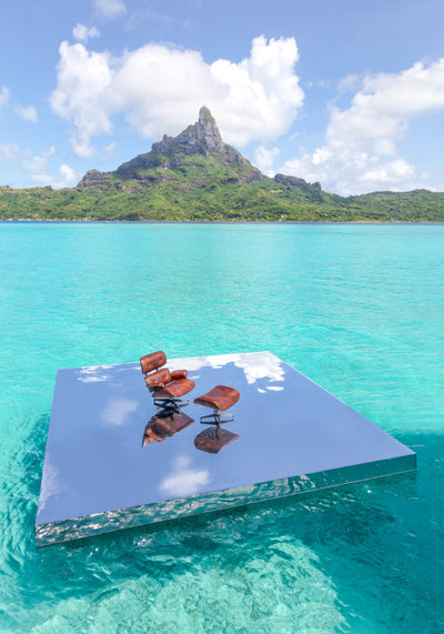 Inspired by the iconic Eames chair, EAMES LOUNGE CHAIR AND OTTOMAN VERTICAL, BORA BORA accentuates the form of the iconic modern design. Gray uses heirloom furniture to welcome you into the unexpected setting.