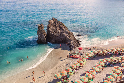 Lounge under the beach umbrellas, stroll atop the sands, and enjoy a dip in with Mediterranean Sea every day with EDEN ROCK FROM ABOVE, MONTEROSSO from Gray's celebrated series, La Dolce Vita.