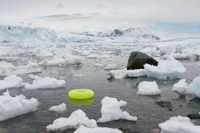 A bright neon summer accessory boldly contrasts the rigid white glacier surroundings in GREEN TUBE ICE BAY from his influential private series, Antarctica. With this series, Gray presents a larger message of continual climate transformations and their effects on the stunning landscape. He shot on location in the iceberg-covered continent to see firsthand the remaining wilderness of our planet.