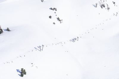 Ride along snow kissed mountains in HEADWALL EXPRESS, PALISADES, LAKE TAHOE, from Gray’s popular À la Montagne series.