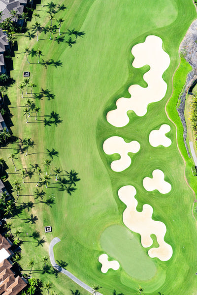 Take in the incredible aerial view over HOLE 18 VERTICAL, FOUR SEASONS HUALALAI GOLF COURSE, HAWAI’I from Gray’s popular series, À la Plage.