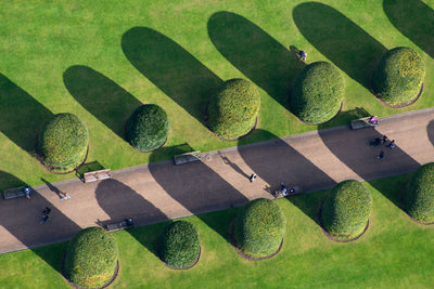 A regal overhead view of KENSINGTON PALACE HEDGES displays a geometric pattern, adding a sense of dimension and balance into any space. Captured from above while shooting on location in London, Gray expanded upon his Au Parc series after being inspired by a delightful memory of a picnic he once had in Central Park.