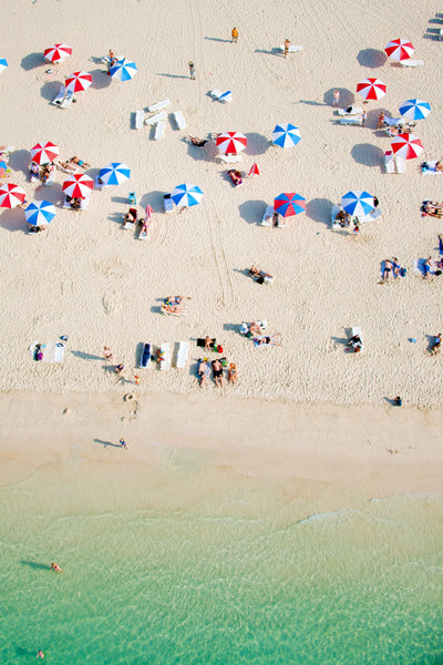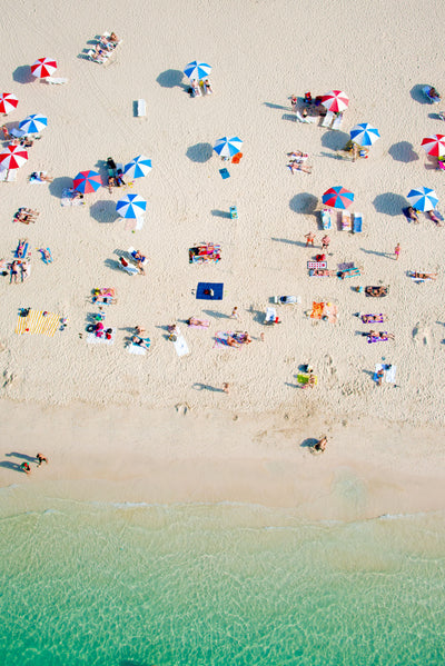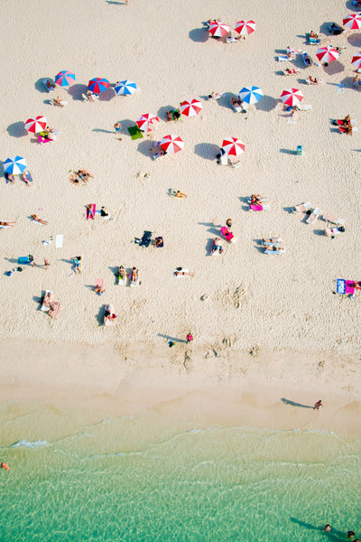 Daydream of Dubai with this mesmerizing DUBAI KITE BEACH TRIPTYCH shot on location from a doorless helicopter as part of the popular A la Plage series. The sandy shores filled with colorful beachgoers and the stunning tropical aqua waters evoke a feeling of endless summer, carrying out Gray's vision of a visual celebration of color, light, shape and summer bliss.