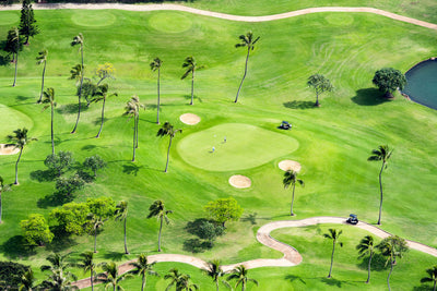 Enjoy the mesmerizing aerial view of swaying palm trees on the green with KO OLINA GOLF CLUB, OAHU from Gray’s popular series, À la Plage.