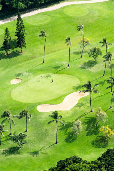 Enjoy the mesmerizing aerial view of swaying palm trees on the green with KO OLINA GOLF CLUB VERTICAL, OAHU from Gray’s popular series, À la Plage.