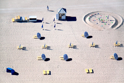 Soothing shades of pale yellow and blue evoke a retro-summertime mood in MIAMI BEACH BLUE AND YELLOW CHAIRS of Gray's iconic A la Plage series. He documented this series while traveling the globe and shooting from a doorless helicopter, ultimately creating the most incredible series of aerial beauty.