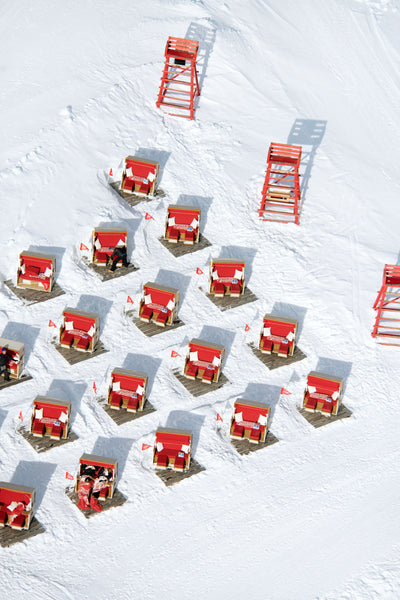 Conjure a visual celebration of color, repetition and pattern with this overhead view of the radiant PARADISO SKI CLUB ST. MORITZ in your space. Shot on location in Switzerland from a doorless helicopter, Gray captured his well-known A la Montagne series to showcase the luxe winter bliss found in lavish ski resorts around the world from a unique aerial perspective.