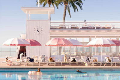 Indulge in the perfect day by the water with “Pool Day, Coral Casino,” a vibrant fine art photography print from Gray Malin’s “Dogs at Coral Casino” series. Featuring pink umbrellas and blue skies, along with pups by the pool, this artwork captures the playful spirit of a sunny poolside escape. Ideal for those who love classic coastal vibes and playful decor.