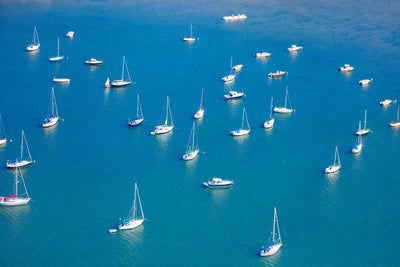 Set sail atop the sparkling blue waters of PORTLAND HARBOR, MAINE from Gray’s beloved À la Plage series.