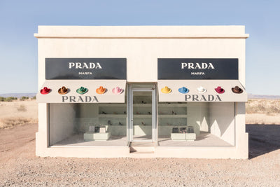 Enjoy the colorful palette of RAINBOW COWBOY HATS II, PRADA MARFA shot on location in Texas for Gray’s popular Prada Marfa series at the iconic exhibit created by artists Elmgreen and Dragset.