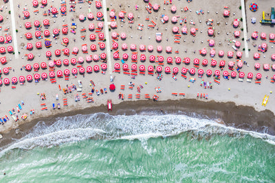 Refresh your room and add a ravishing touch with RED UMBRELLAS, RIVAZZURRA displaying rows of iconic umbrellas from the superb À la Plage series. Gray ventured to the Italian coastline and photographed above the Mediterranean from a doorless helicopter to expand upon his popular series. These incredibly unique aerial images are a visual celebration of color, light, shape and summer bliss.