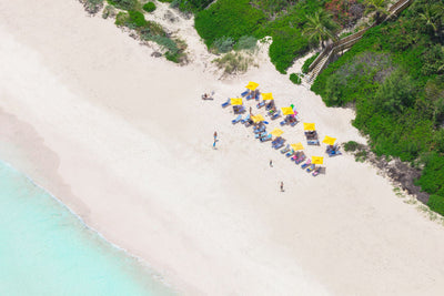 Take shade under the stunning yellow umbrellas at RUNAWAY HILL BEACH, HARBOUR ISLAND from Gray’s beloved aerial beach series, À la Plage.