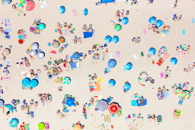 Join visitors and locals alike under the sun with SECOND BEACH SUNBATHERS, NEWPORT from the acclaimed beach aerial series, À la Plage.