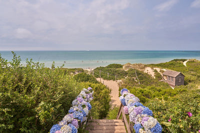 Take a stroll to paradise with “Steps Beach Vista, Nantucket,” a serene and timeless fine art photography print from Gray Malin’s “Gray Malin on Nantucket” series. Featuring the iconic stairway to Steps Beach, wrapped with pastel hydrangeas, this piece brings a sense of calm and natural beauty to your space. Perfect for those who love coastal landscapes, this print adds a touch of Nantucket’s charm to your decor.