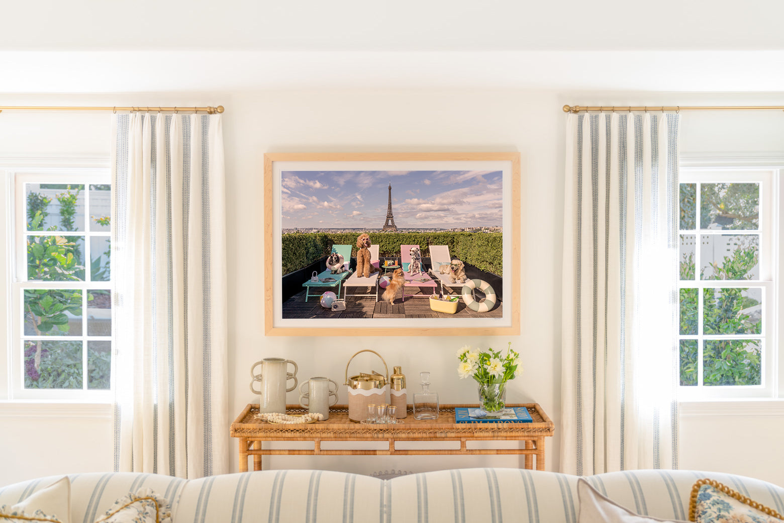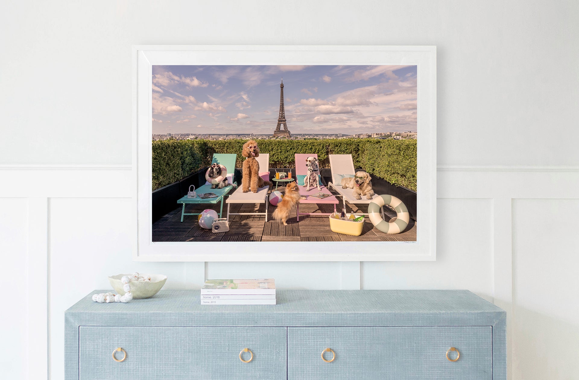 Join a pack of posh pups basking in the Parisian sun with "Terrasse Sunbathers, Hôtel Plaza Athénée." This joyful fine art photography print from Gray’s Dogs of Paris series captures the elegance of French luxury, perfect for dog lovers and Francophiles.