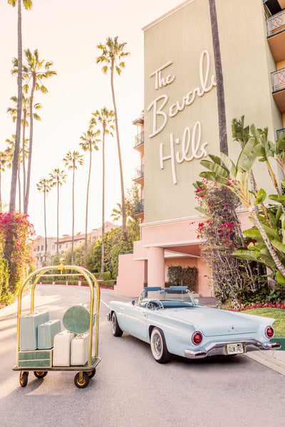 Step into classic Hollywood luxury with “The Beverly Hills Hotel,” a sophisticated fine art photography print from Gray Malin’s “Gray Malin at The Beverly Hills Hotel” series. Captured at the iconic Los Angeles property, this piece embodies timeless elegance and style with a vintage car and luggage. Perfect for adding a touch of glamour to any room.