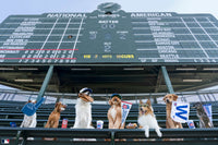 Dogs show off their game day pride under the scoreboard in The Crowd Goes Wild, from the Wrigley Field™ collection of Gray's iconic series, Dogs of Wrigley Field™.
