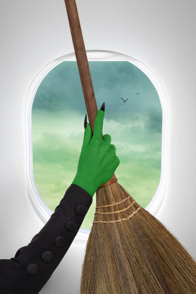 With a green hand gripping a broom against a swirling sky, THE GRAVITY DEFYER from Gray Malin’s iconic Bon Voyage photography series channels the power of someone unafraid to rise above it all — defiant, determined, and ready to soar.