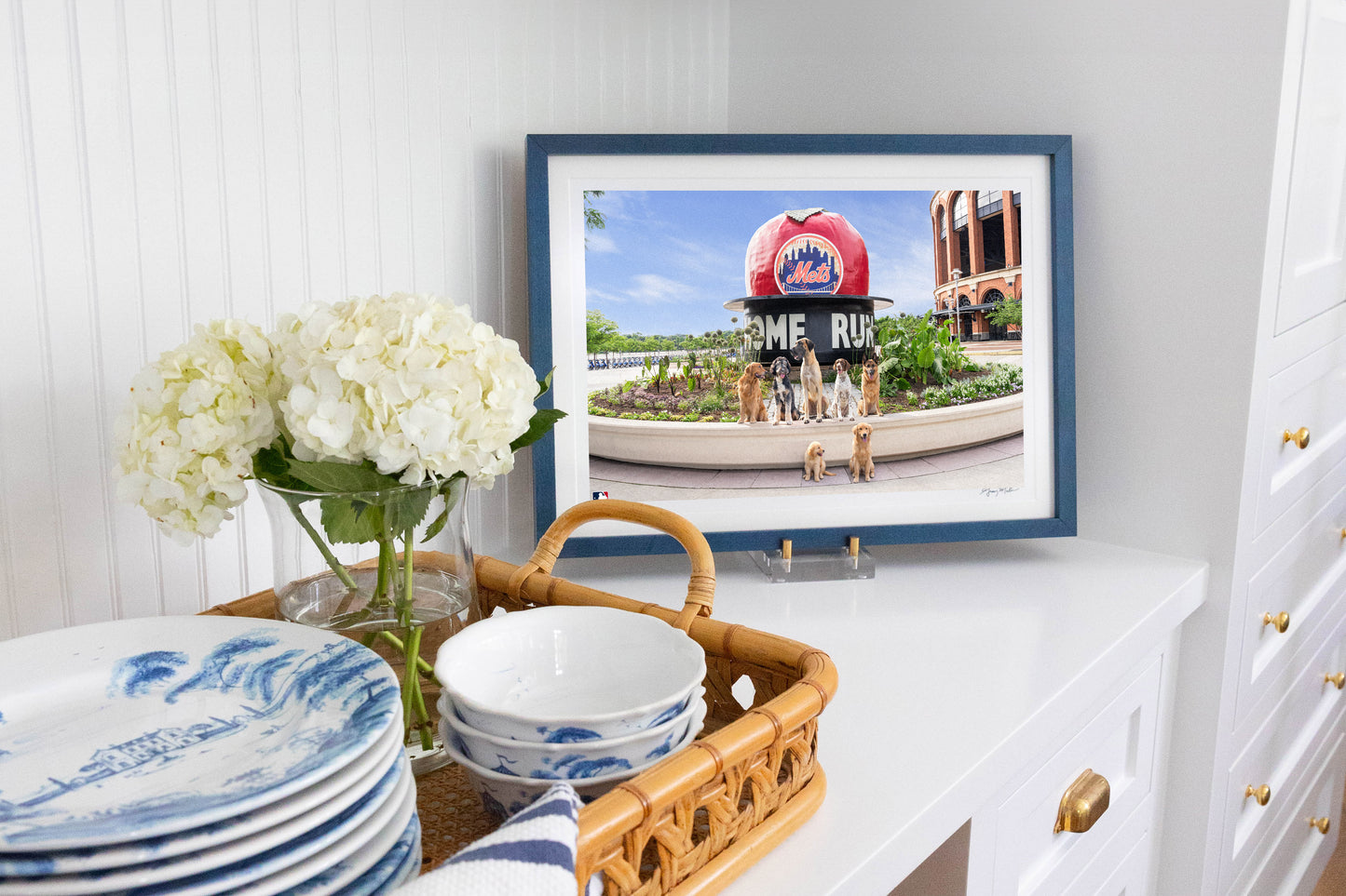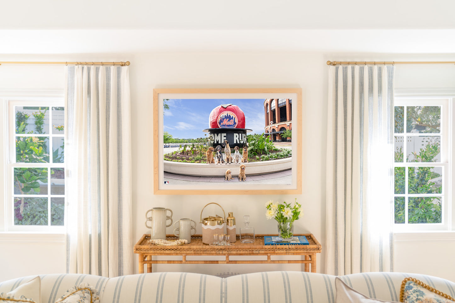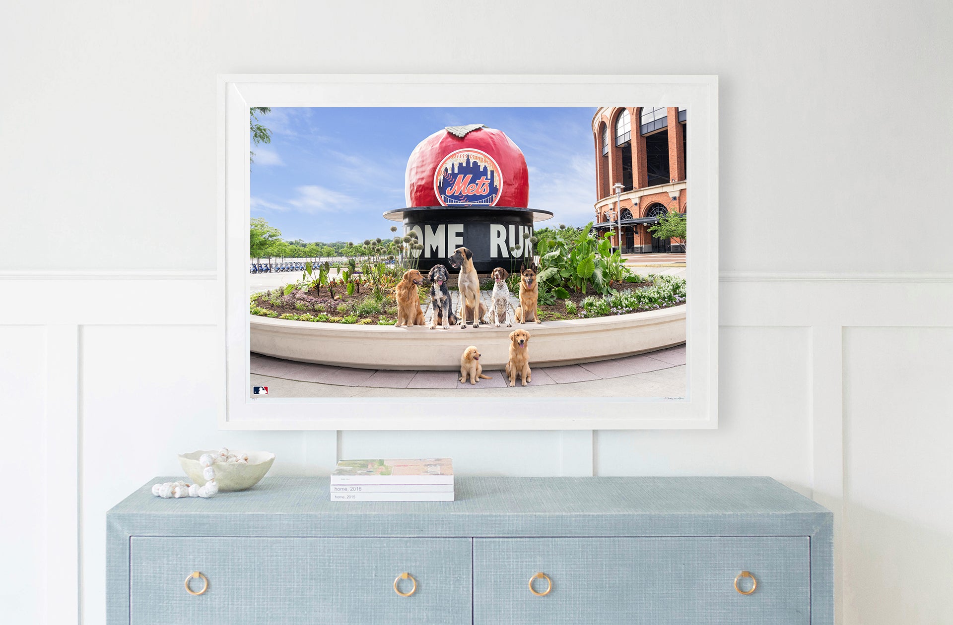 The gang’s all here, and ready for a great day at Citi Field™ in The Home Run Apple Pups, a fine art photography print from Gray Malin’s “Dogs of Baseball” series.