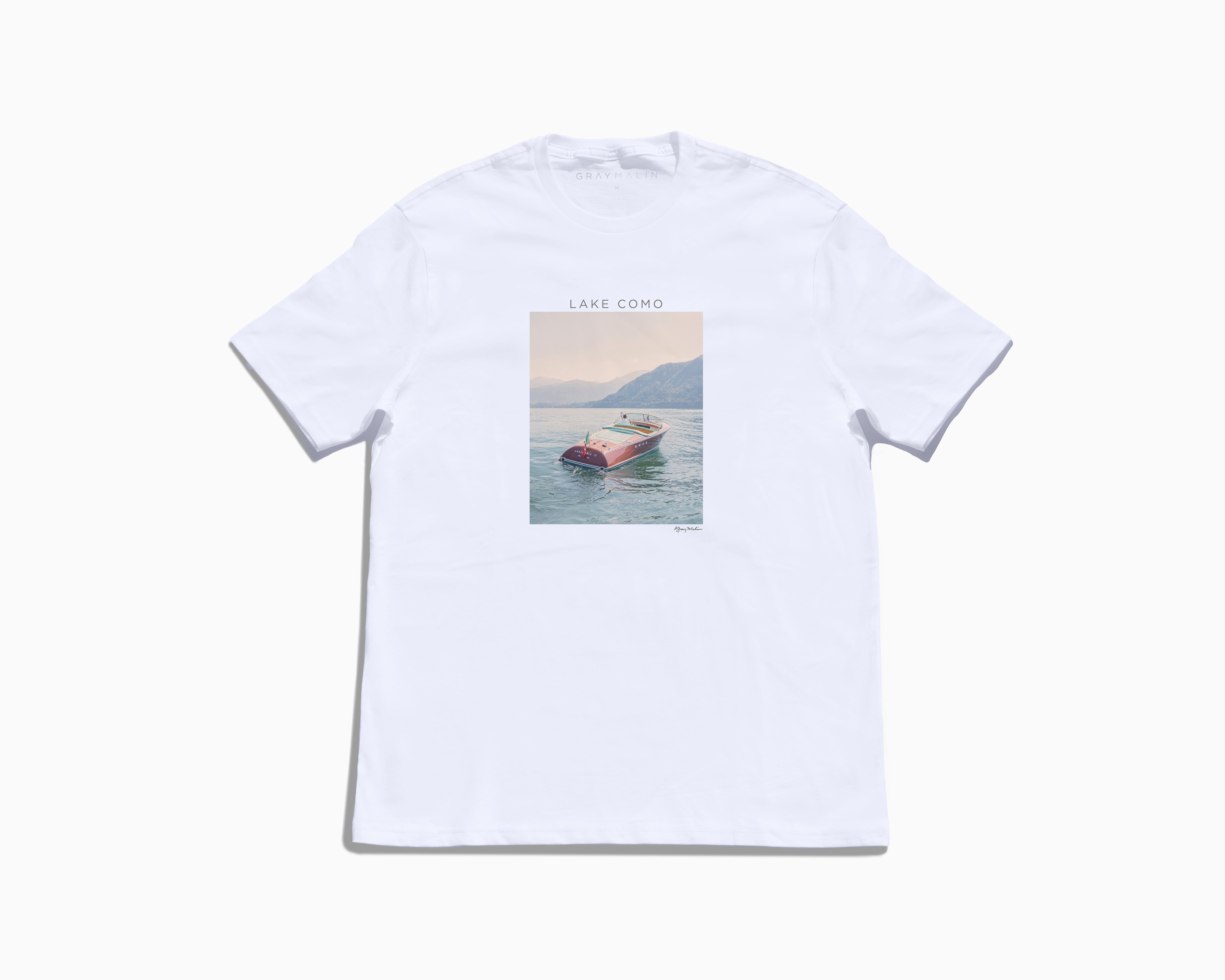 Embrace the spirit of Italian elegance with the Lake Como Tee by Gray Malin. Crafted from luxuriously soft, premium cotton, this effortlessly chic white T-shirt features a fine art photography print from Gray’s iconic Lake Como collection, capturing the serene beauty, grand villas, and majestic mountains of this Italian gem.