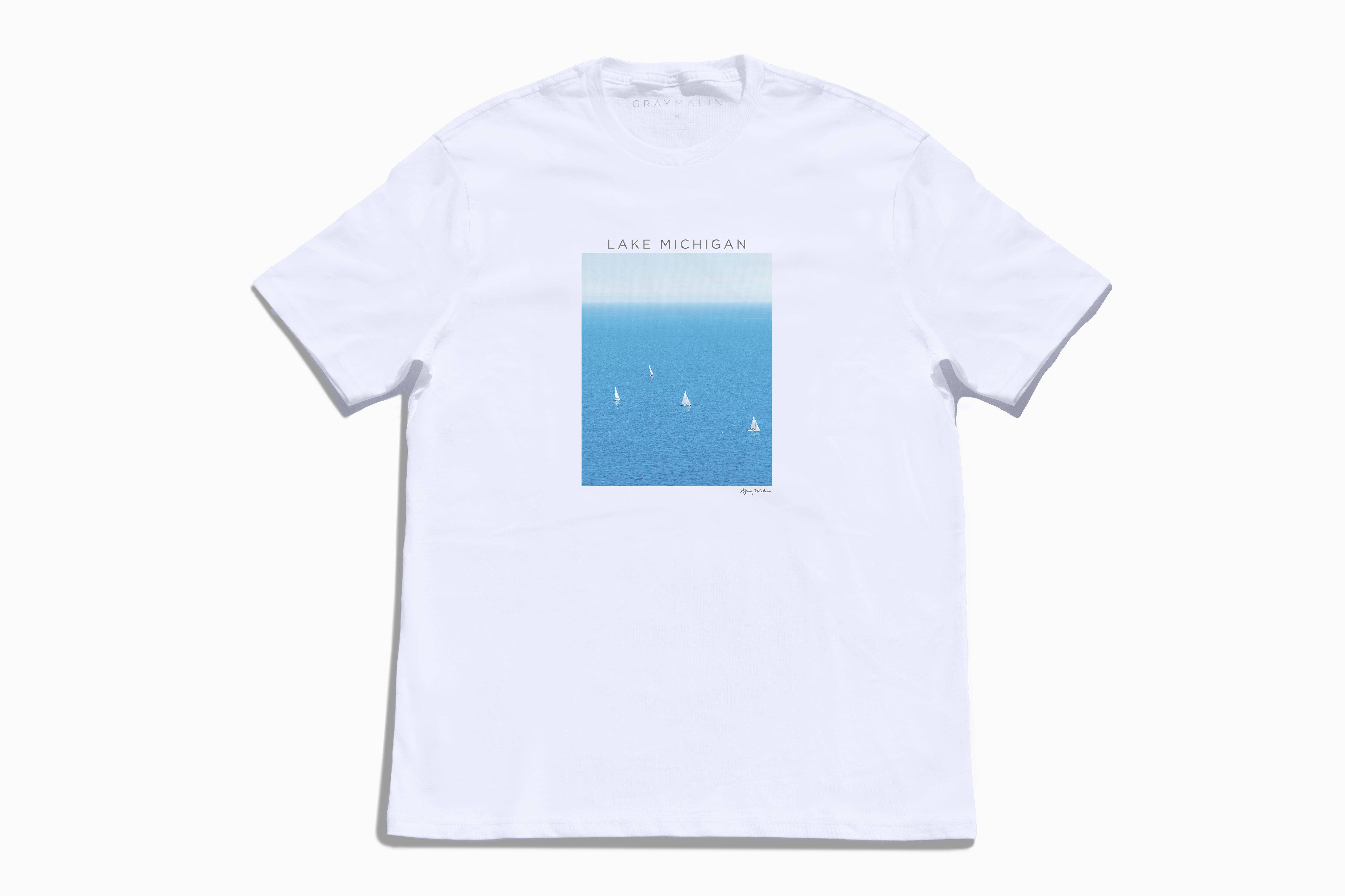 Embrace the spirit of Midwestern charm with the Lake Michigan Tee by Gray Malin. Crafted from luxuriously soft, premium cotton, this effortlessly chic white T-shirt features a fine art photography print from Gray’s iconic Lake Michigan collection, capturing the tranquil shores, iconic lighthouses, and serene beauty of this stunning freshwater lake.