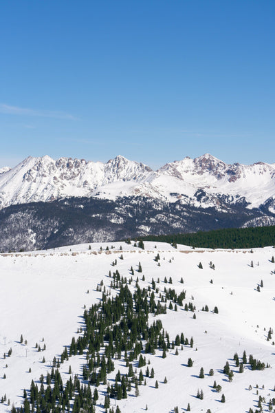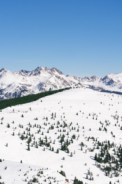 Enjoy the stunning alpine views from above in THE LEGENDARY BACK BOWLS TRIPTYCH, VAIL from Gray’s À la Montagne series.