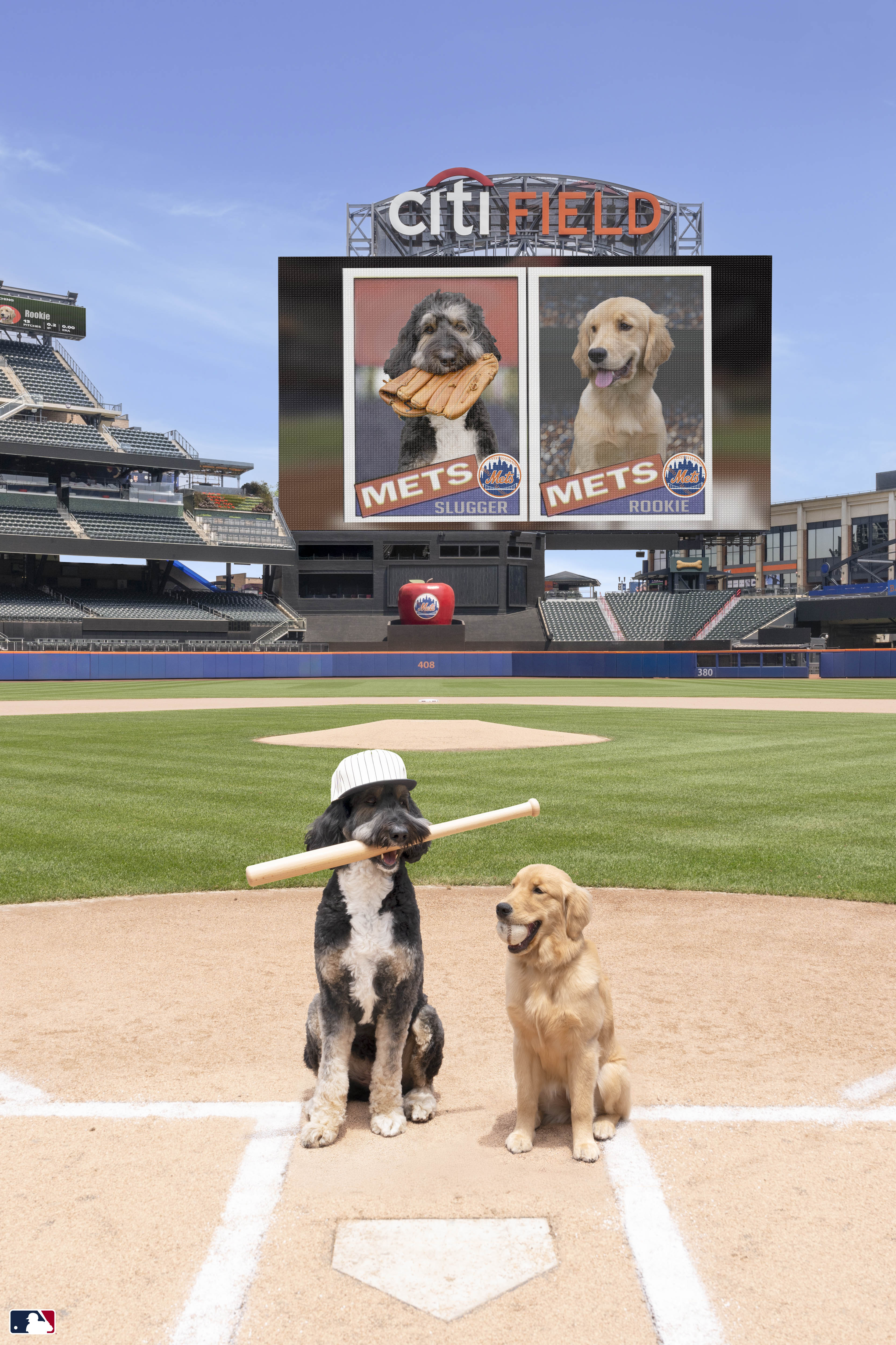 Batter up! An unlikely duo pairs up in The MVPs, a fine art photography print from Gray Malin’s “Dogs of Baseball” series.