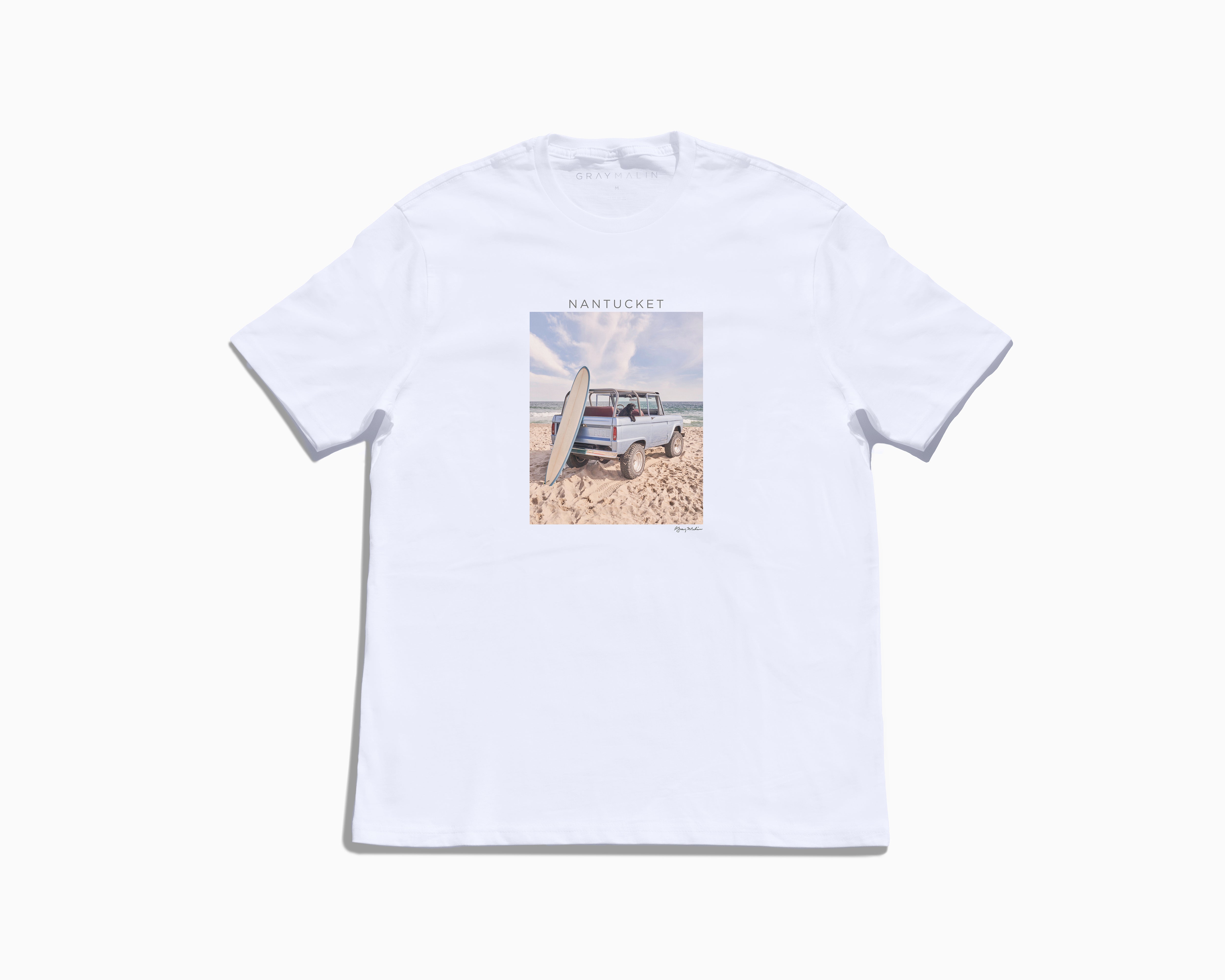 Embrace the timeless charm of Nantucket with the Nantucket Tee by Gray Malin. Crafted from luxuriously soft, premium cotton, this effortlessly chic white T-shirt features a fine art photography print from Gray’s iconic Nantucket collection, capturing the beauty of classic lighthouses, picturesque cobblestone streets, and tranquil harbor views.