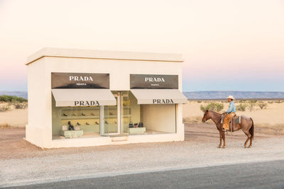 Experience the juxtaposition of art and nature with The Onlooker, Prada Marfa, a fine art photography print from Gray Malin’s Prada Marfa series. This captivating image showcases the surreal contrast between rural Texas countryside and the luxurious Prada Marfa exhibit, inviting viewers to ponder the nature of art and luxury. Perfect for those with a taste for the avant-garde, this print adds intrigue and sophistication to any space.