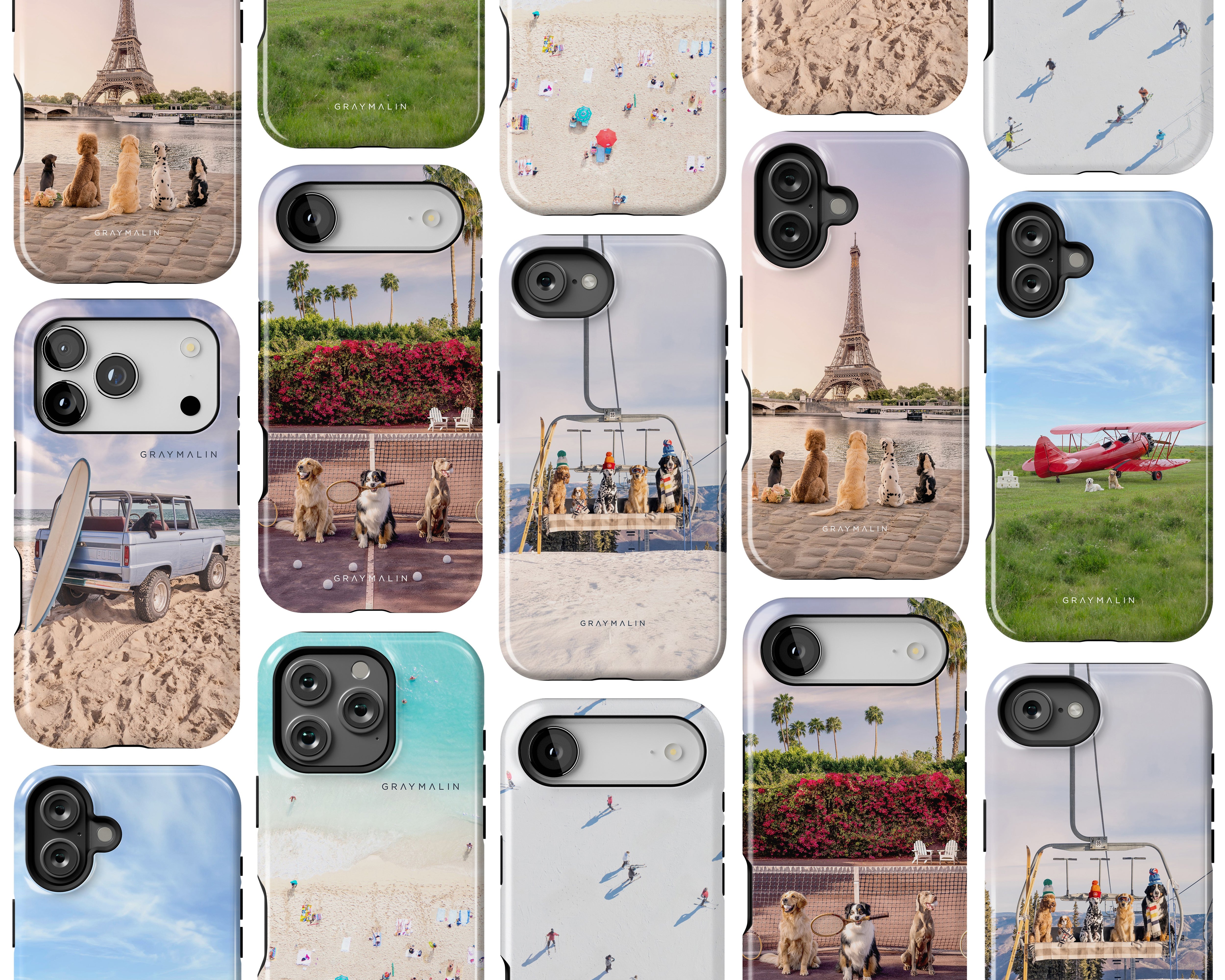 Treat yourself to an everyday getaway with one of our custom iPhone cases featuring a quintessential Gray Malin image or pattern. Each case is MagSafe Tough and includes dual-layer construction (a hard outer shell made of polycarbonate + a TPU insert), embedded magnets so that it works with MagSafe-certified chargers and accessories, and a high-quality glossy finish. Available in all iPhone 15, 16, and 17 styles.