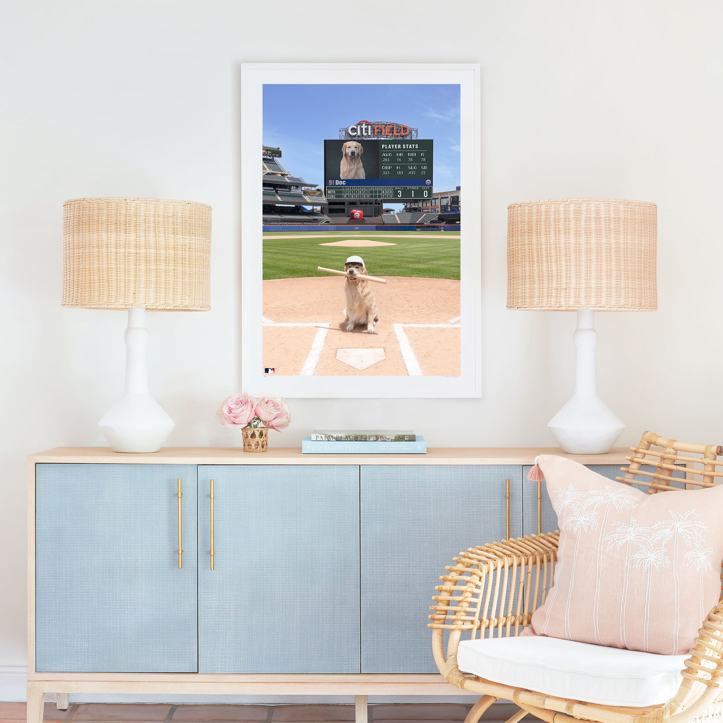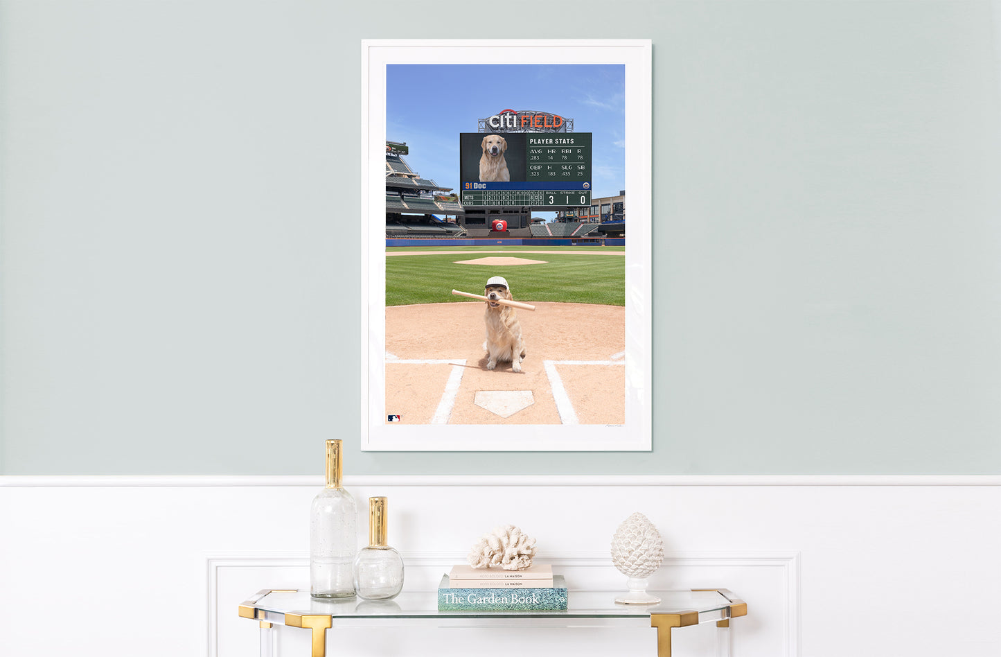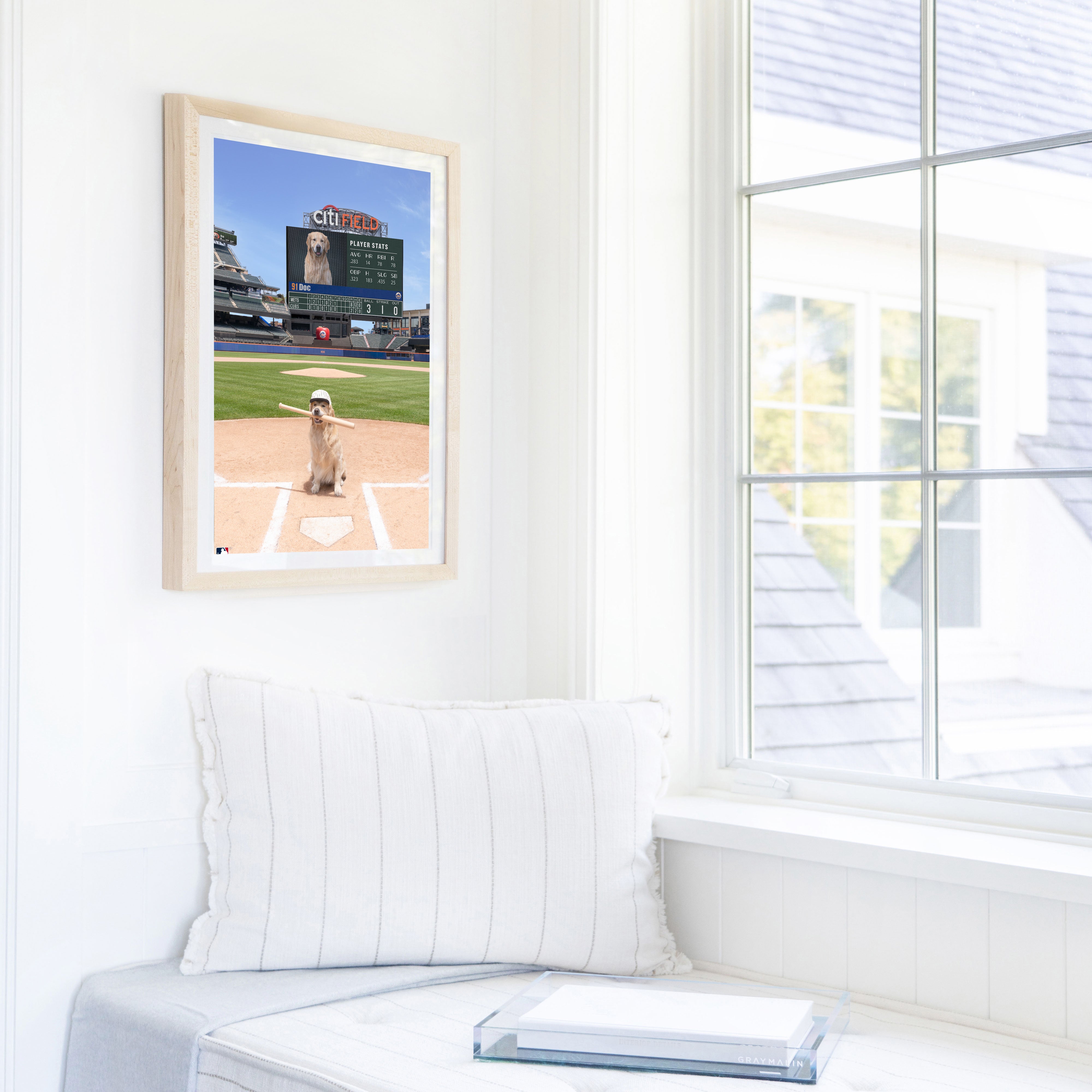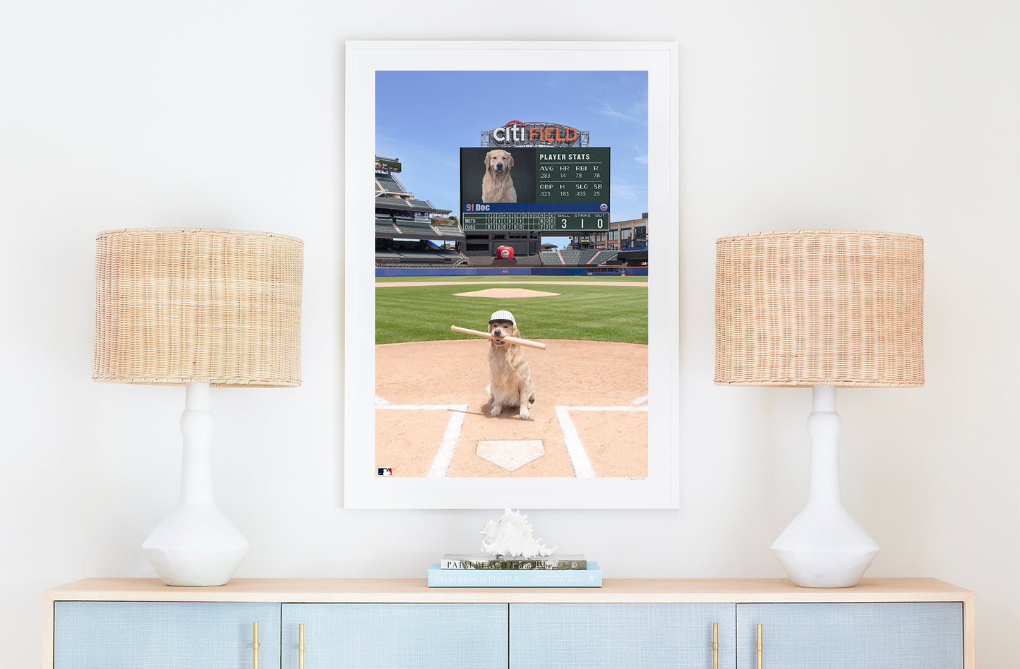 This good boy is ready to hit a home run in The Pinch Hitter, a fine art photography print from Gray Malin’s “Dogs of Baseball” series.