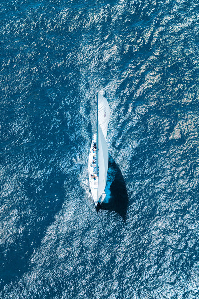 Sail through the beautiful blue waters of "The Sailboat, Newport Harbor," a stunning fine art photography print from Gray’s renowned À la Plage aerial series. Perfect for lovers of nautical adventures, this image brings a sailboat the calmness of the sea into any space.