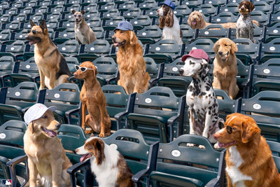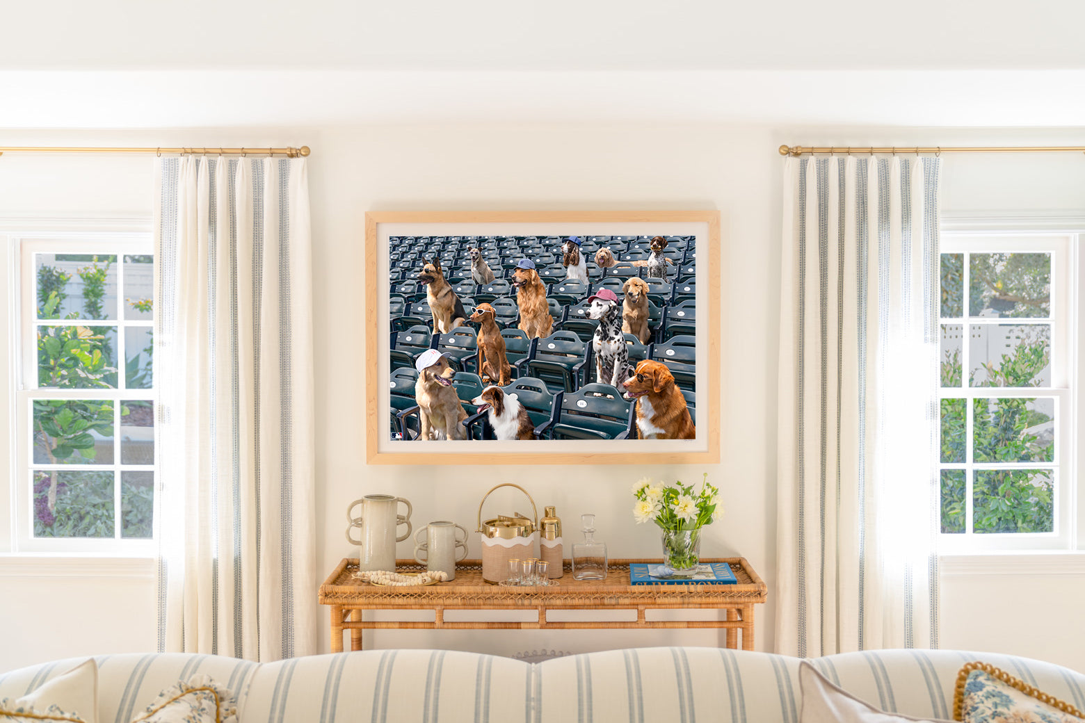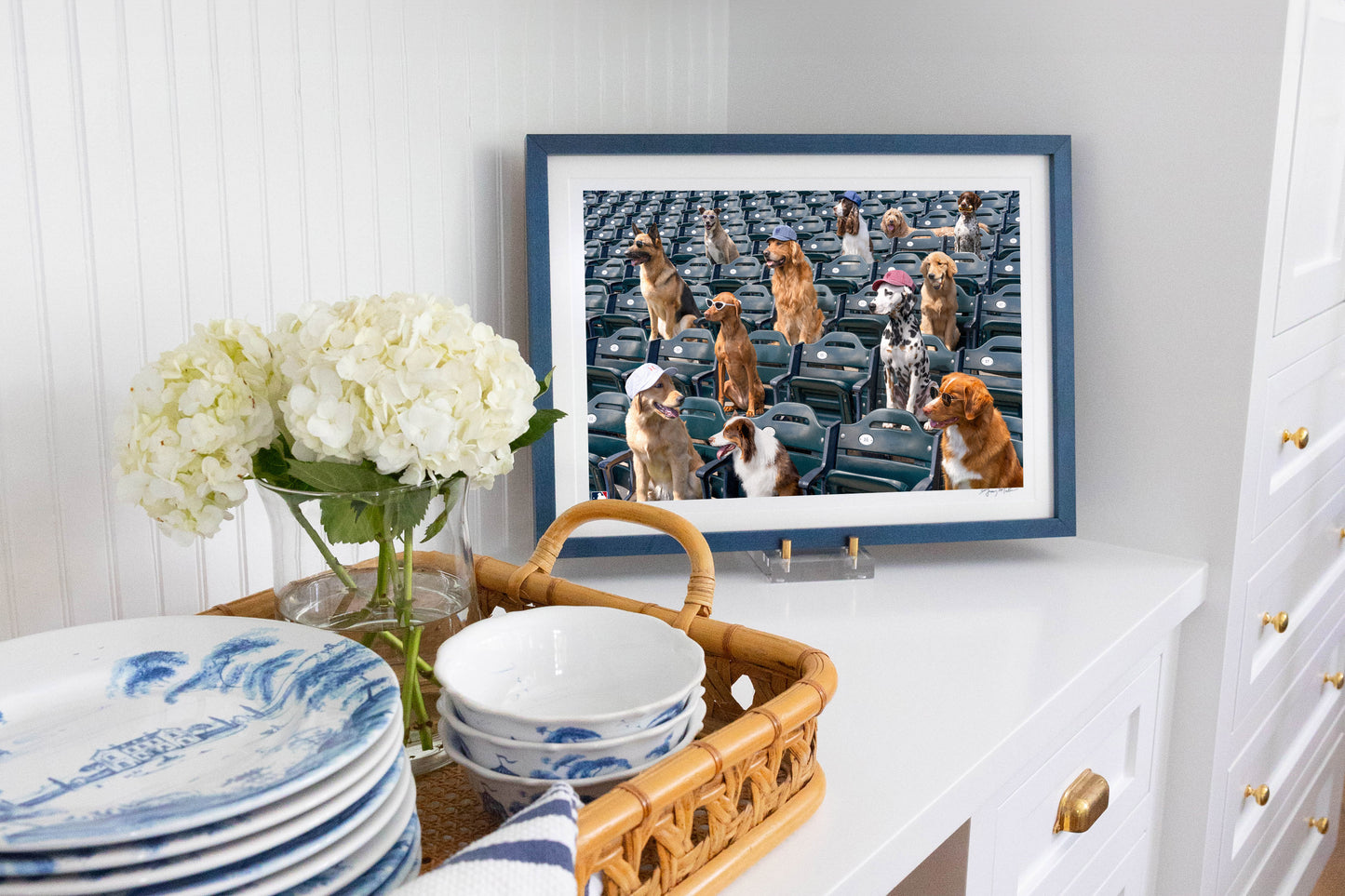 Take man’s best friend out to the ballgame, in The Spectators, a fine art photography print from Gray Malin’s “Dogs of Baseball” series.