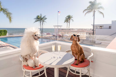 Raise a glass and savor the moment in THE TY WARNER CABANA, CORAL CASINO from Gray’s playful series, Dogs at Coral Casino.