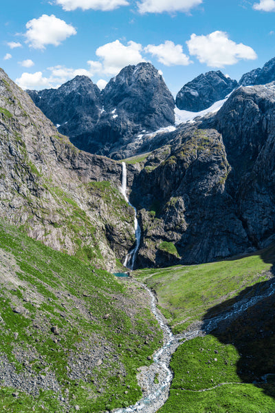 Discover majestic wonders and glistening water in THE WATERFALL VERTICAL, QUEENSTOWN, NEW ZEALAND from Gray’s beloved series, À la Montagne.