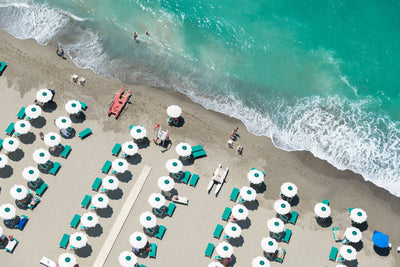 Escape to a seaside oasis with a serene palette showcased in TUSCAN EMERALD SEA. Expanding upon his incredibly popular À la Plage series, Gray ventured to Italy and photographed from a doorless helicopter. He shares from his travel diary, ‚Äúfrom above, a simple beach becomes a blank canvas that allows me to start seeing the world as art.‚Äù
