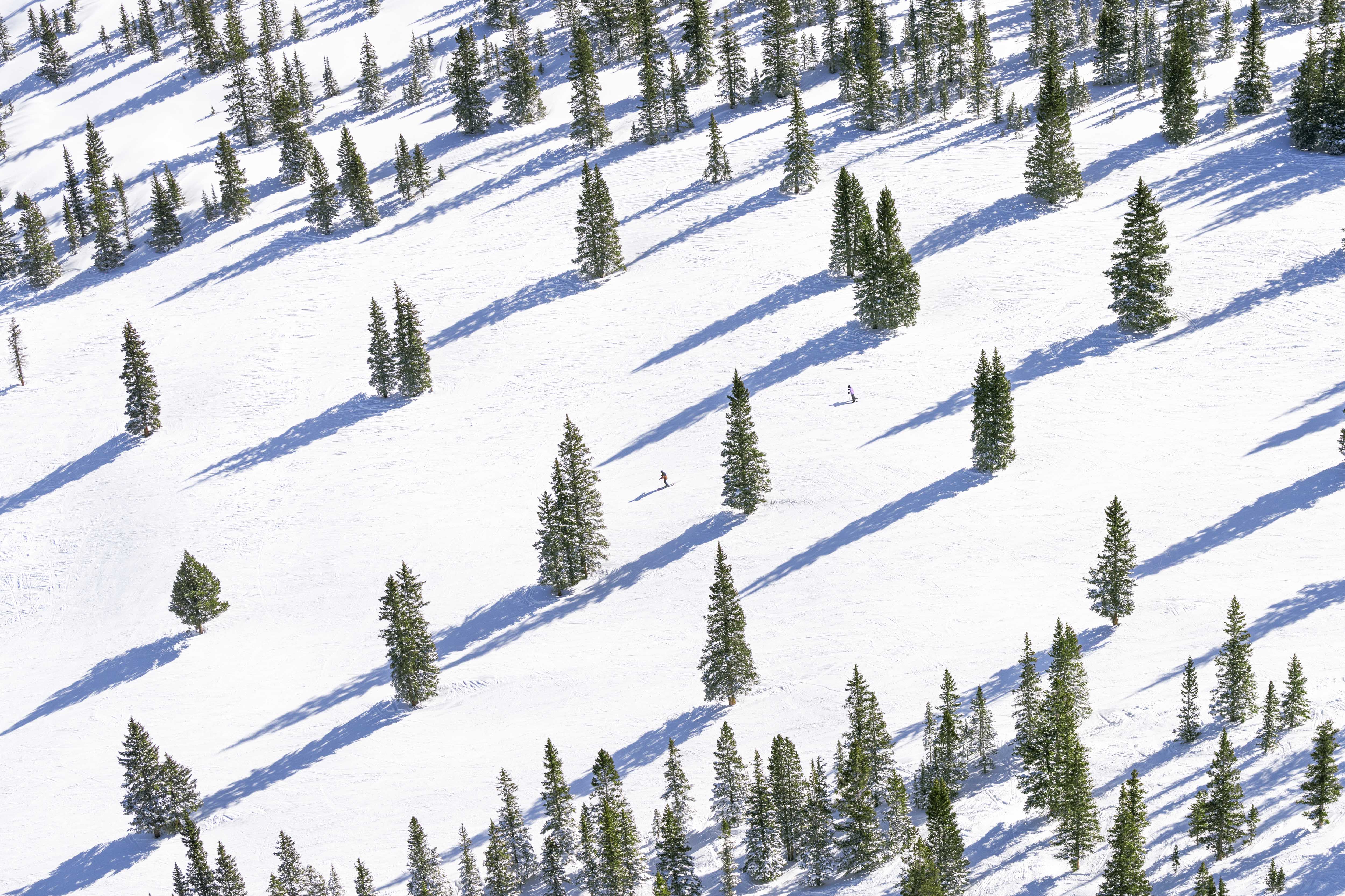 A quiet duet gliding in sync in Two Skiers, Snowmass Mountain, from Gray’s iconic series, À la Montagne.
