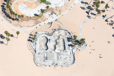 This outstanding overhead view captures the laid-back vibes of Los Angeles's iconic skate park. Gray documented VENICE BEACH of the well-known A la Plage series from a doorless helicopter, sharing that from above, people and objects become patterns creating repetition, shape and form. Mix in an eclectic, timeless sandy-hued snap into your space for an instant retreat to the LA lifestyle.